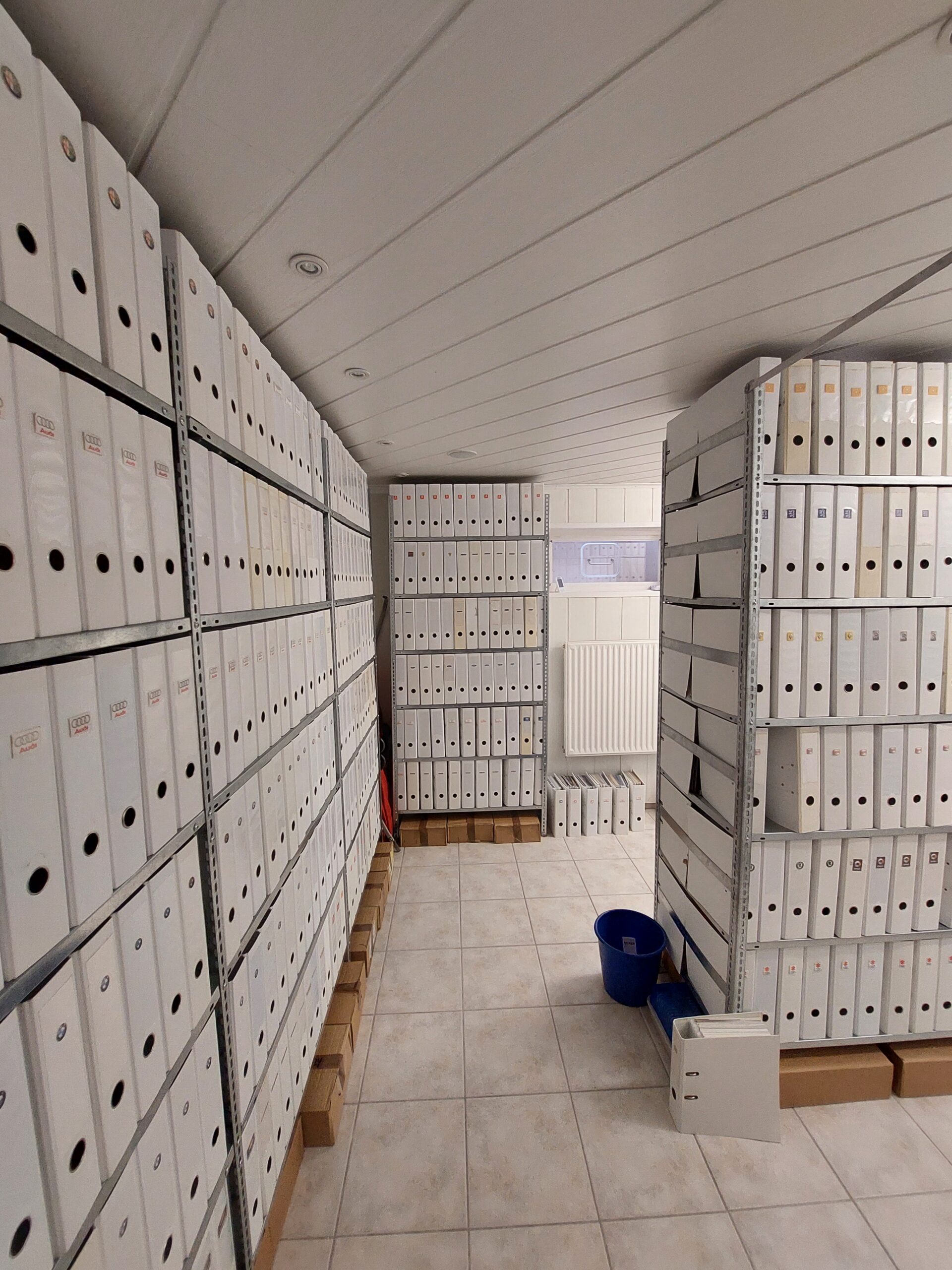 Wie auch in anderen Archiven muss Herr Berghus genau darauf achten, welche Temperatur und Luftfeuchtigkeit im Raum herrschen. Gerade Papier wird sehr schnell angegriffen und vergilbt und zersetzt sich dadurch langsam. Hier kann man je nach Art des Papiers Unterschiede feststellen.
