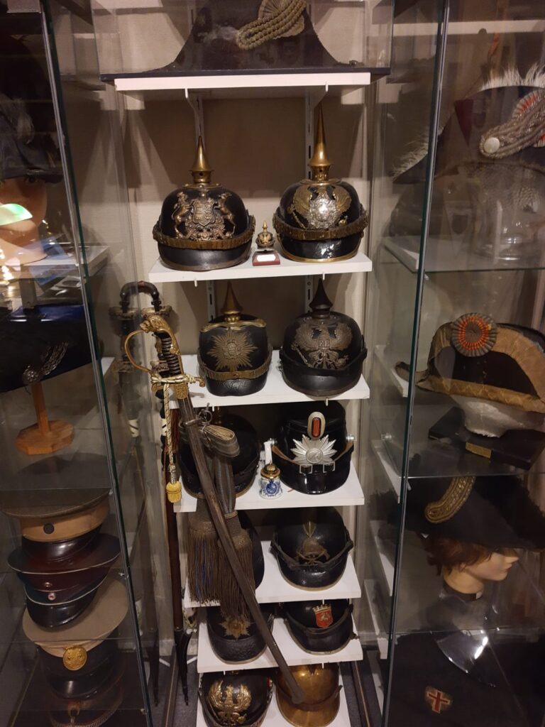 Thomas Kortemeyer hat eine eindrucksvolle historische Mützensammlung – von Pickelhauben über Zwei- und Dreispitze bis hin zu französischen Képis ist alles dabei. Schätzungsweise 100 Mützen sind in seinem Besitz. Hinzu kamen nach und nach auch Uniformjacken, Säbel, Orden und Abzeichen sowie einige Wandschilder der Bundeswehr. Seine Sammlung spiegelt unterschiedliche Epochen der Geschichte wie die österreichische Kaiserzeit um Franz Joseph oder die Zeit des Dritten Reiches wider. Mittlerweile liegt der Sammelfokus aber auf der deutschen Geschichte.